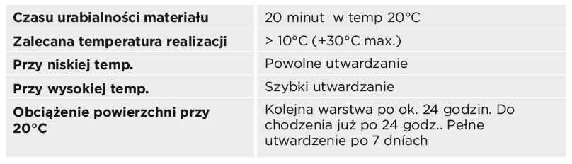 W czasie aplikacji i utwardzania TopStone EP21- zabroniony jest kontakt z wodą i innymi substancjami chem. Przy ogrzewaniu pomieszczeń w czasie aplikacji nie używać ogrzewaczy gazowych, naftowych, które produkują w miejscu realizacji CO i parę wodną, które mają negatywny wpływ na jakość wykonywanej powierzchni.
