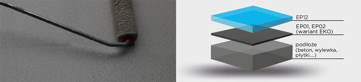 1. Na zagruntowaną i utwardzoną powierzchnię (EP01, EP02 lub wariant EKO) aplikować zgodnie z poniższą technologią EP12 (ok. po 12-24 godz.