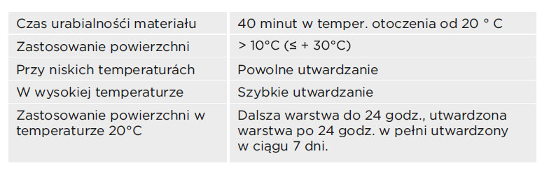 W czasie aplikacji i utwardzania TopVital nie można dopuścić do bezpośredniego kontaktu z wodą i środkami chemicznymi,(Nie stosować w czasie deszczu!). Do podgrzewania przestrzeni w aplikacji nie należy używać palników olejowych, palników gazowych itp., które tworząc w miejscu CO2 i pary wodne, które mają negatywny wpływ na jakość powierzchni.