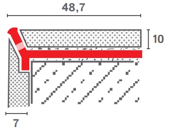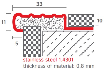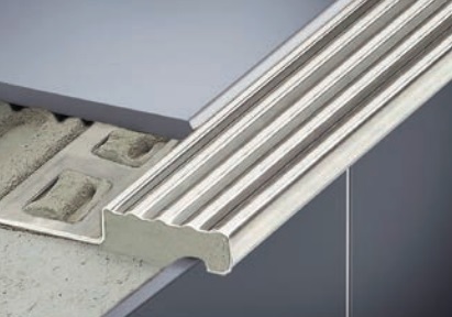 Profil STONE służy do krawędzi schodów przy stosowaniu kamiennych dywanów. Otwory wzdłuż profilu zapewniają odprowadzanie pary wodnej lub
