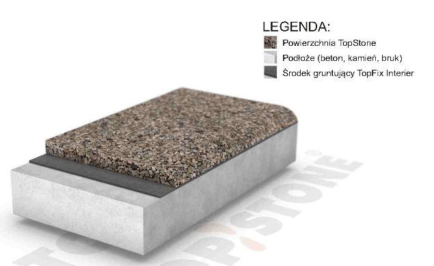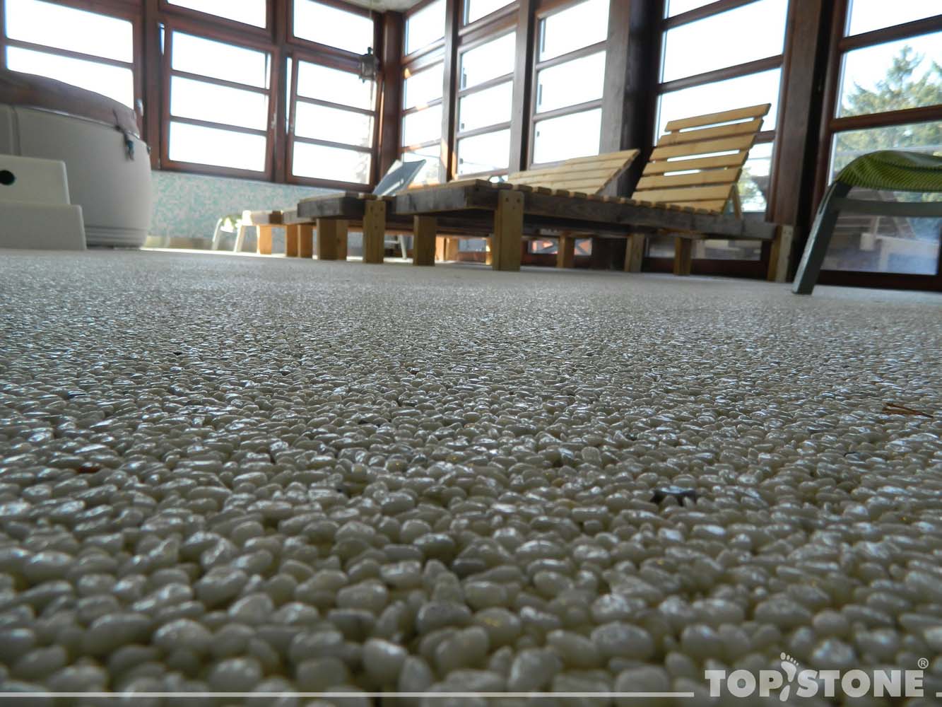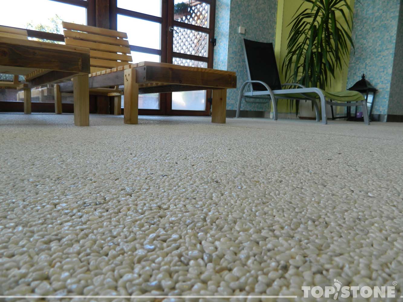Powierzchnie Dywany Kamienne TopStone można układać również na świeżo położony, niedojrzały beton (5 dni po betonowaniu) oraz anhydryt (do 2% wilgotności resztkowej). Powierzchnia Dywany Kamienne TopStone służy także jako warstwa wyrównująca (podłoże nie musi być idealnie płaskie).